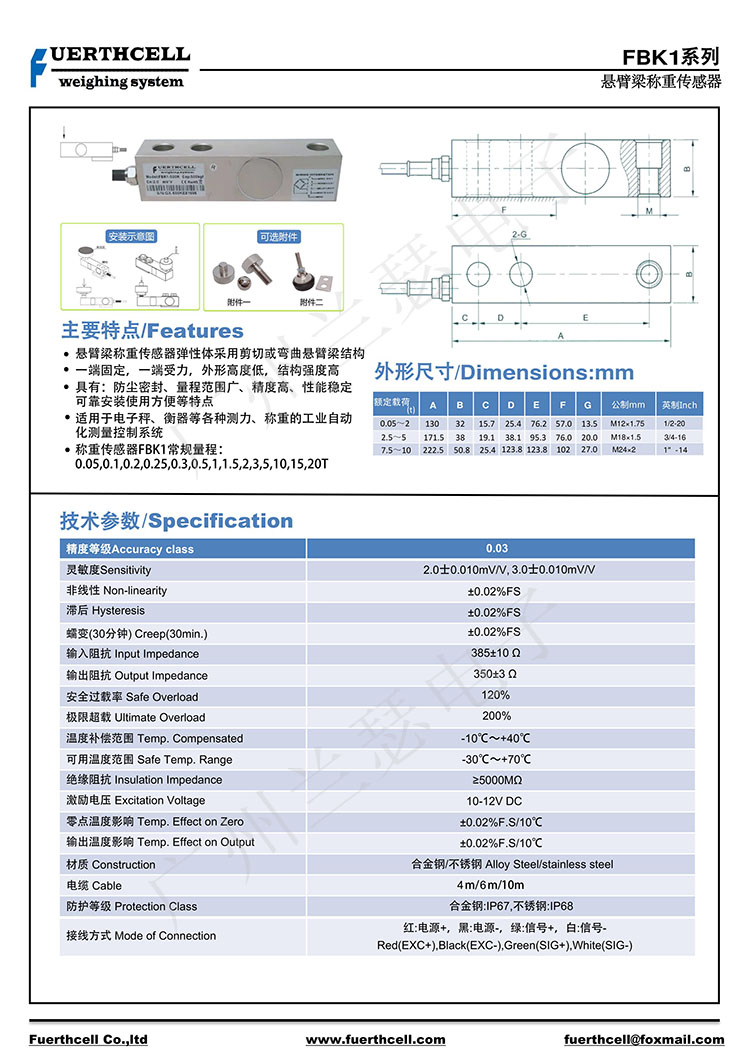 美國FUERTHCELL FBK1-200KG稱重傳感器產品參數:
