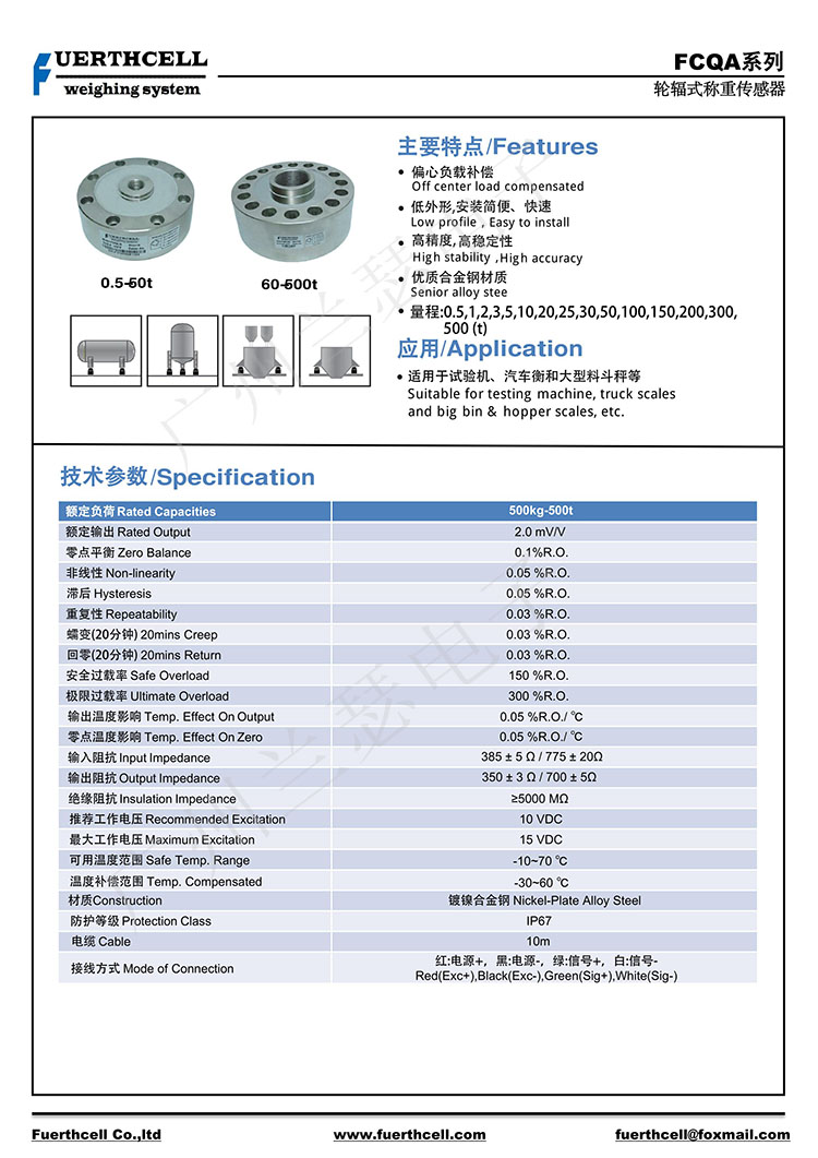 美國FUERTHCELL FCQA-100T稱重傳感器產品參數:
