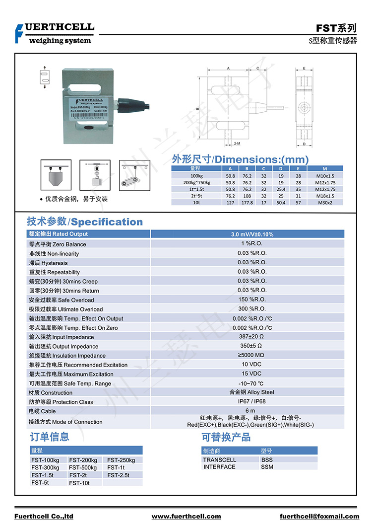美國FUERTHCELL FST-100KG稱重傳感器產品參數: