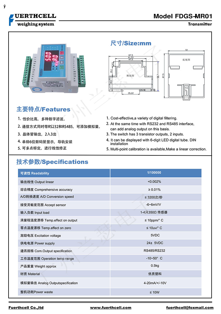 美國FUERTHCELL FDGS-MR01稱重儀表產品參數:
