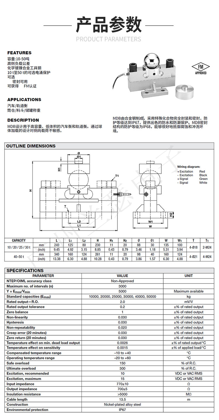 美國威世世銓celtron MDB-20T稱重傳感器技術參數: