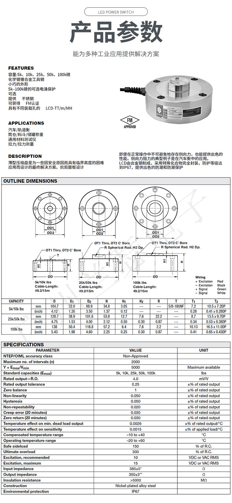 Celtron LCD-5klb輪輻式稱重傳感器產品參數: