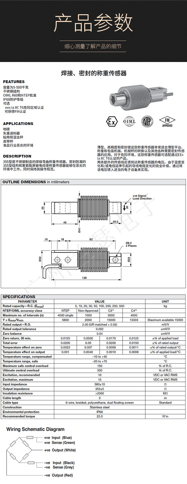 美國Tedea 355-30KG稱重傳感器產(chǎn)品參數(shù):