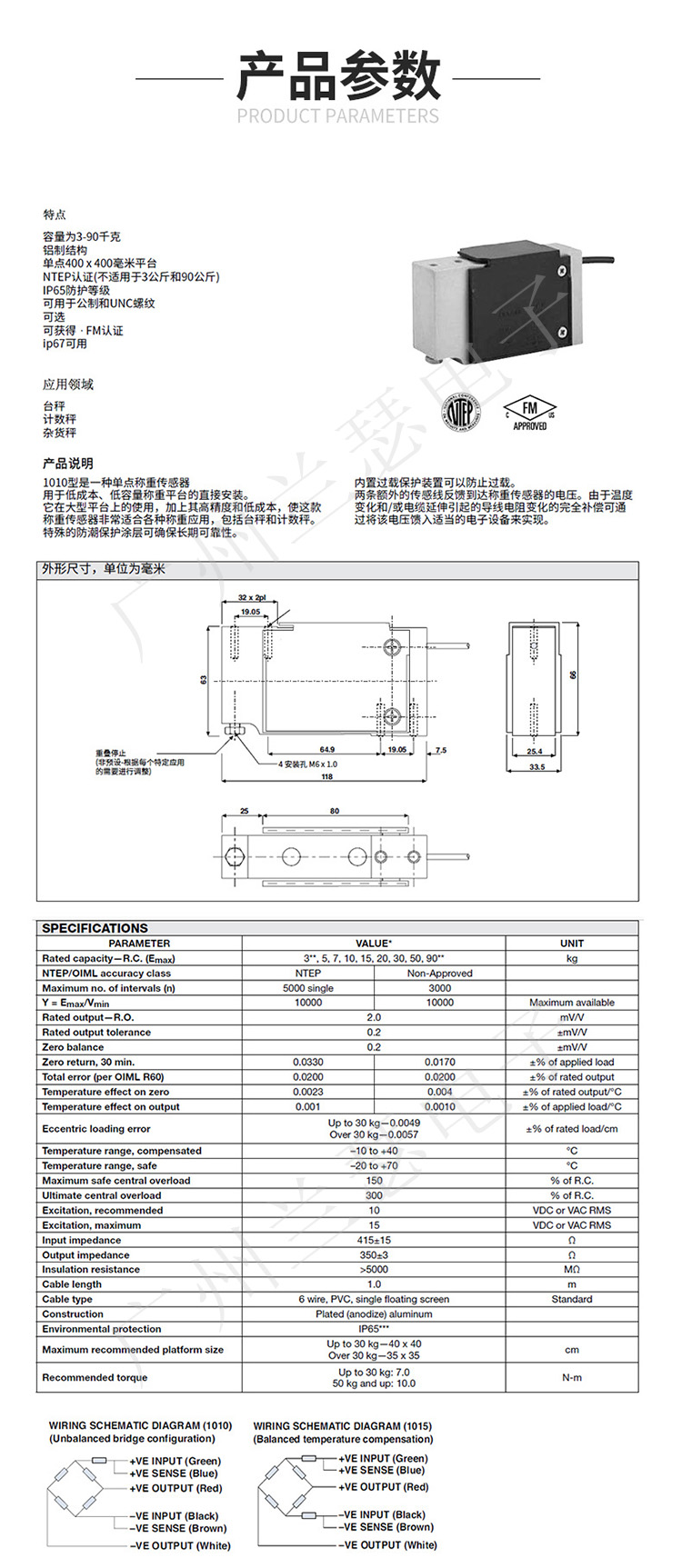 1010-10KG稱重傳感器是采用合金鋼材質(zhì);tedea 1010-10KG傳感器防護(hù)等級IP 67,具有較好的防水防濕,功能支撐臺面:400X400mm;熱銷型號有:1010-10kg,1010-30kg;美國Tedea-Huntleigh 1010-10KG稱重傳感器廣泛應(yīng)用于信件秤、商用秤、計數(shù)秤、多頭秤、校驗秤、定量秤等多個領(lǐng)域。