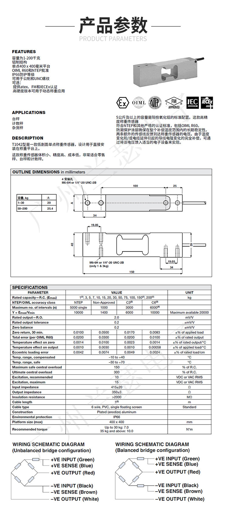 美國Tedea 1042-15kg稱重傳感器產(chǎn)品參數(shù):