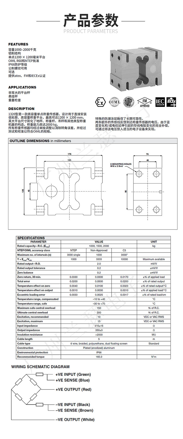 1320-1000kg稱重傳感器技術(shù)參數(shù)圖: