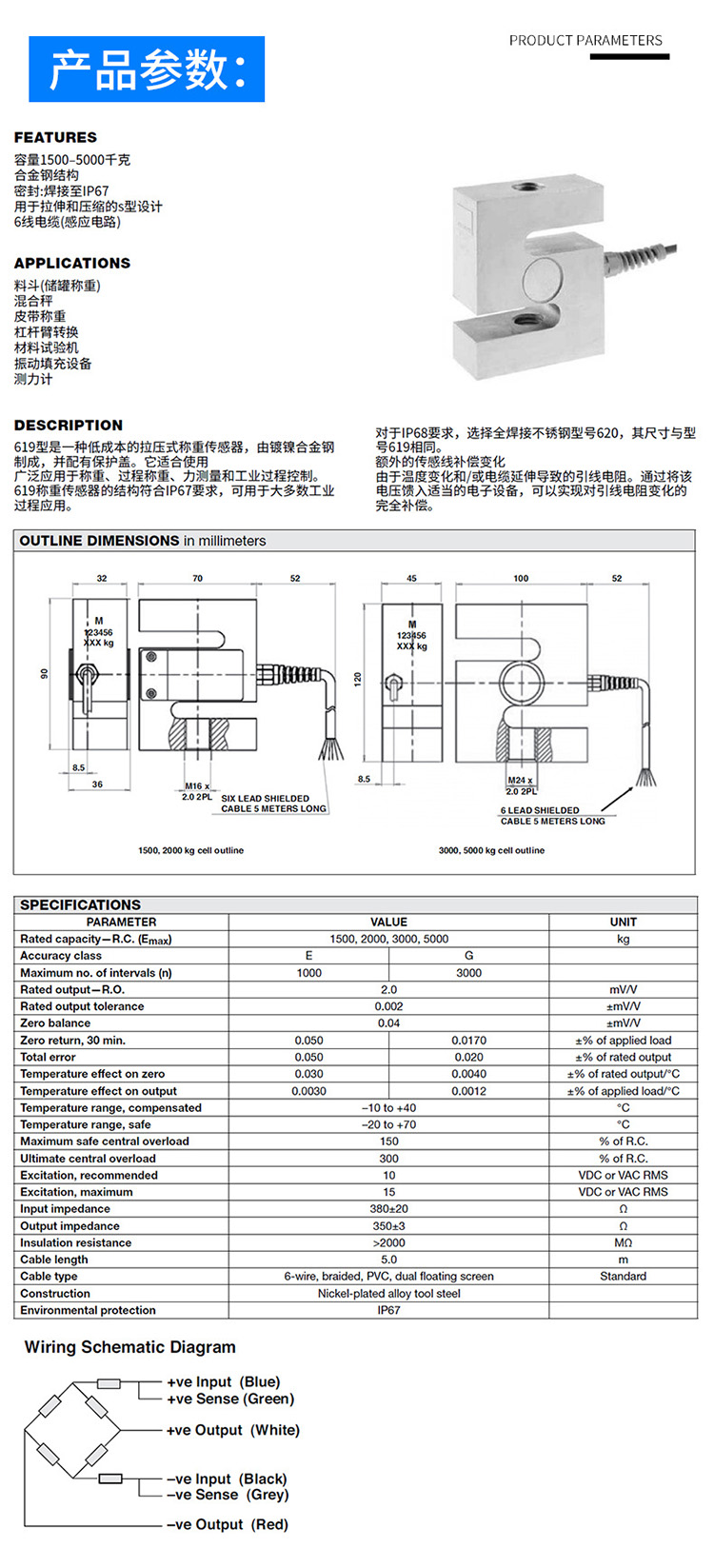 美國Tedea 619稱重傳感器產品參數: