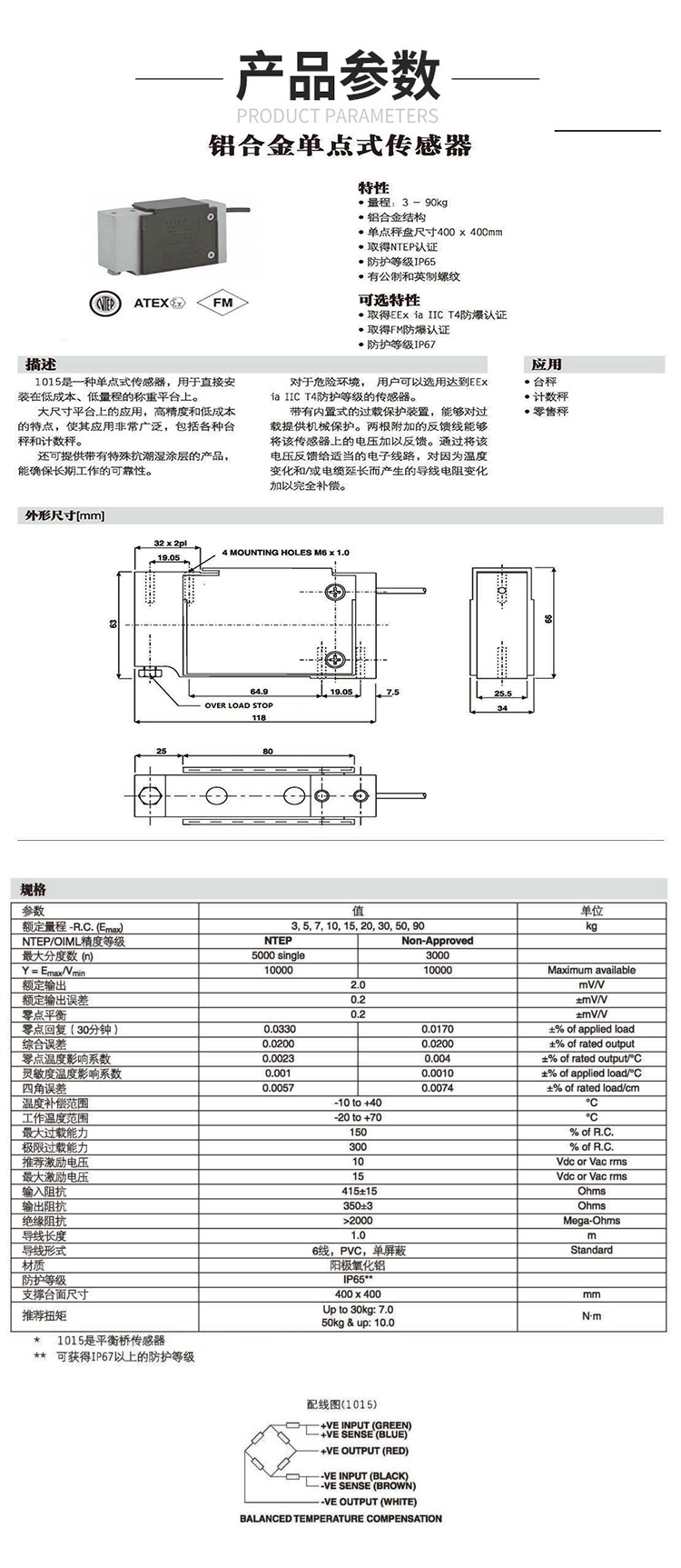 美國Tedea 1015稱重傳感器產品參數: