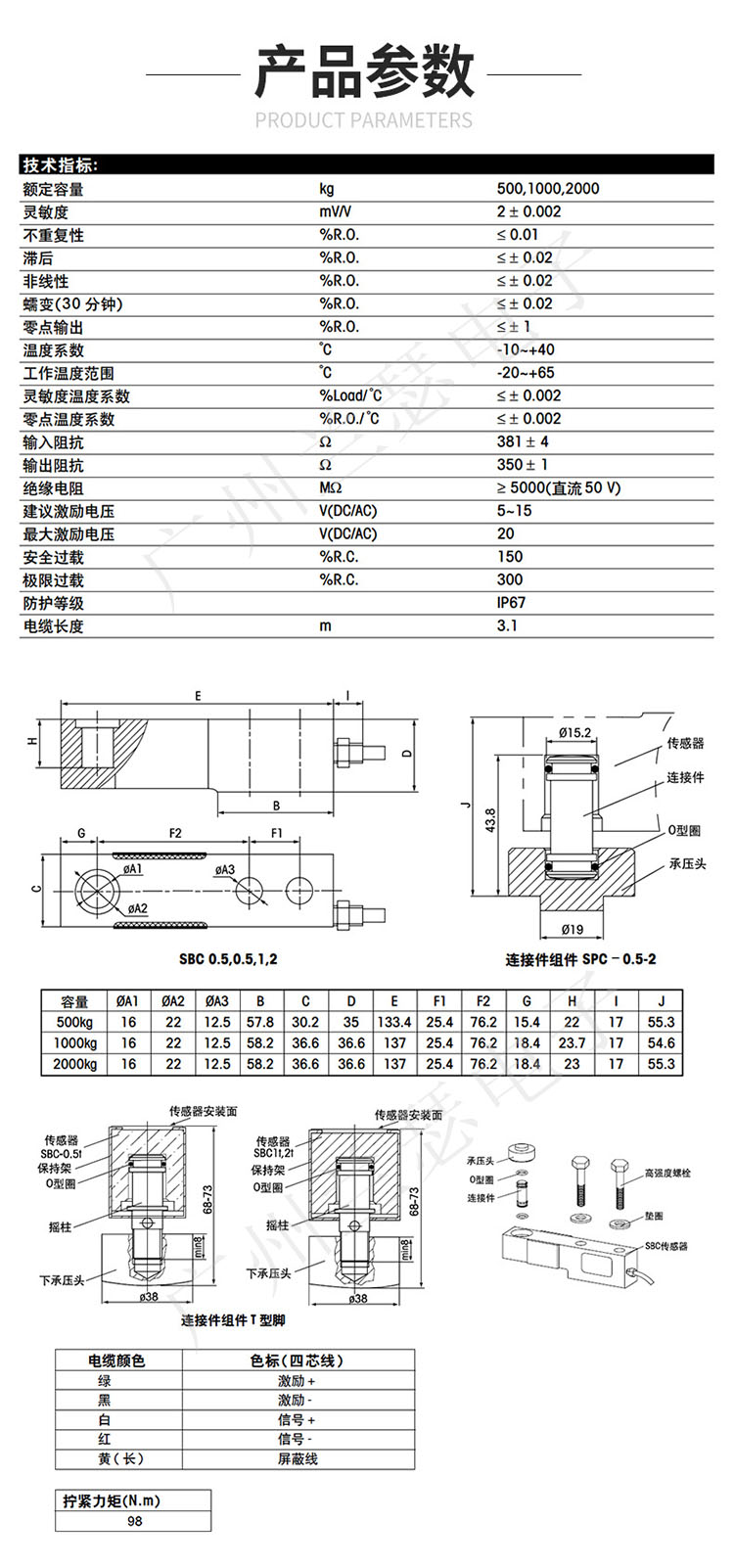 注:SBC-0.5是梅特勒-托利多傳感器中容量為500KG(0.5T)。所以容量為0.5t,那么型號(hào)就是SBC-0.5。以止類推得到SBC系列的所有型號(hào)。
