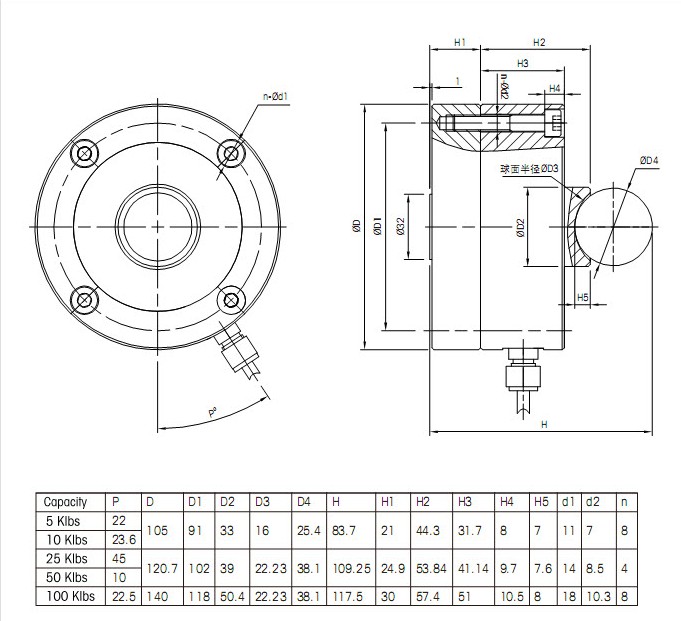 最大稱量值:5, 10, 25, 50, 100 klb