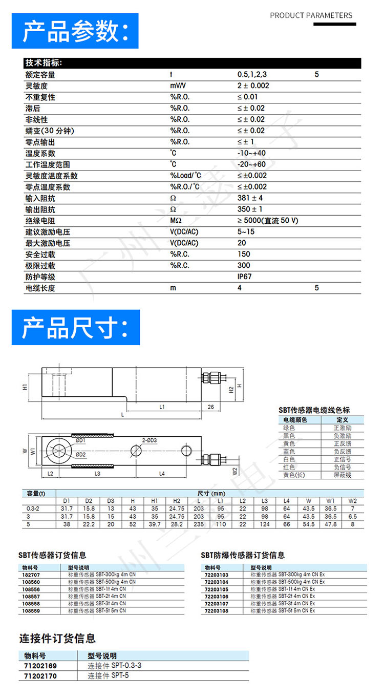 注:SBT-0.3是梅特勒-托利多傳感器中容量為0.3t,那么型號就是SBT-0.3。以止類推得到SBT系列的所有型號。