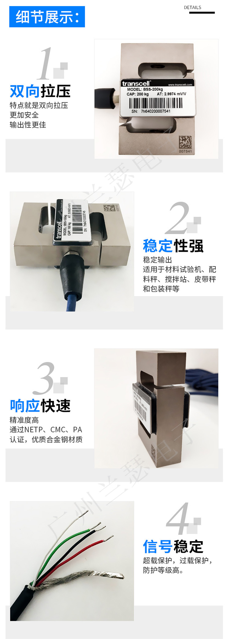 美國Transcell BSS-100KG稱重傳感器產品實拍圖: