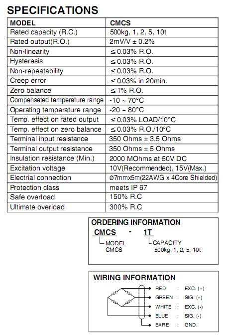 除韓國(guó)bongshin CMCS-500kg稱重傳感器其它相關(guān)熱銷型號(hào):