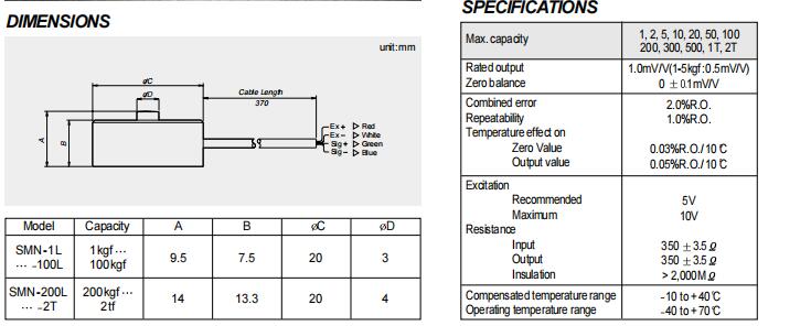 韓國CAS SMN-50L傳感器技術(shù)參數(shù):