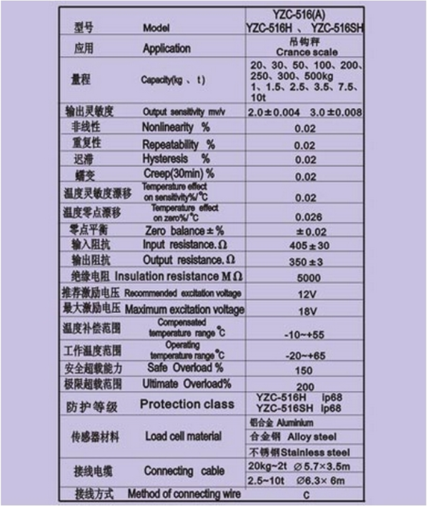 廣測GUANGCE YZC-516稱重傳感器技術參數