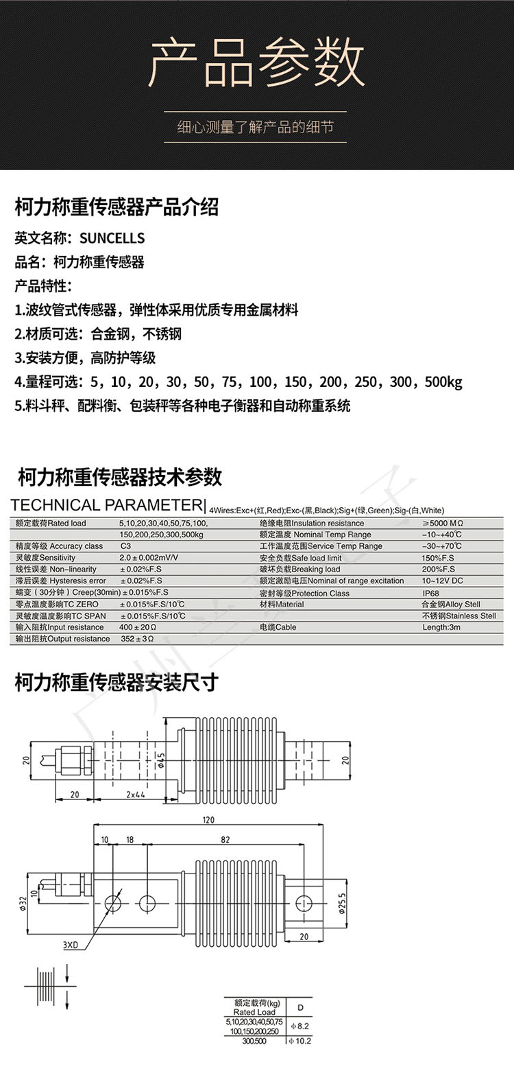 波紋管傳感器;優質合金鋼材質;安裝簡便、快速,高保護等級,穩定可靠;適用于料斗秤、皮帶秤、配料系統等。