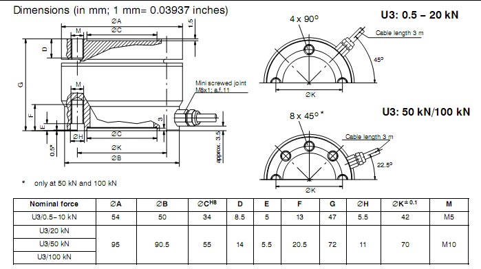 額定靈敏度: 2mV/VU3 - 環(huán)型對稱性,極高的穩(wěn)定性力傳感器