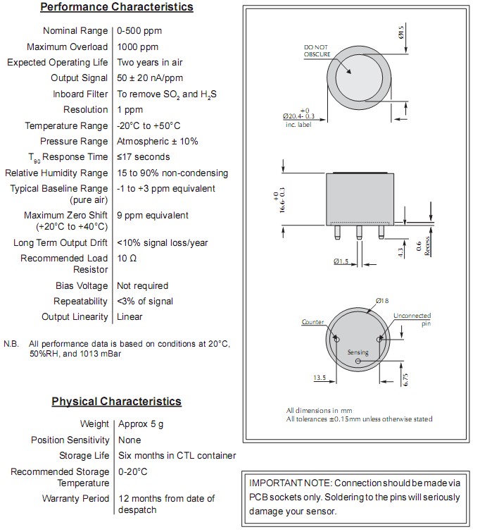 CiTiceL電化學氣體傳感器是密封元件,在正常使用下沒有化學危險性。