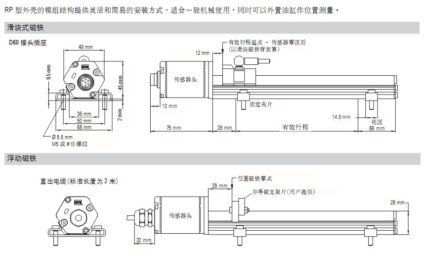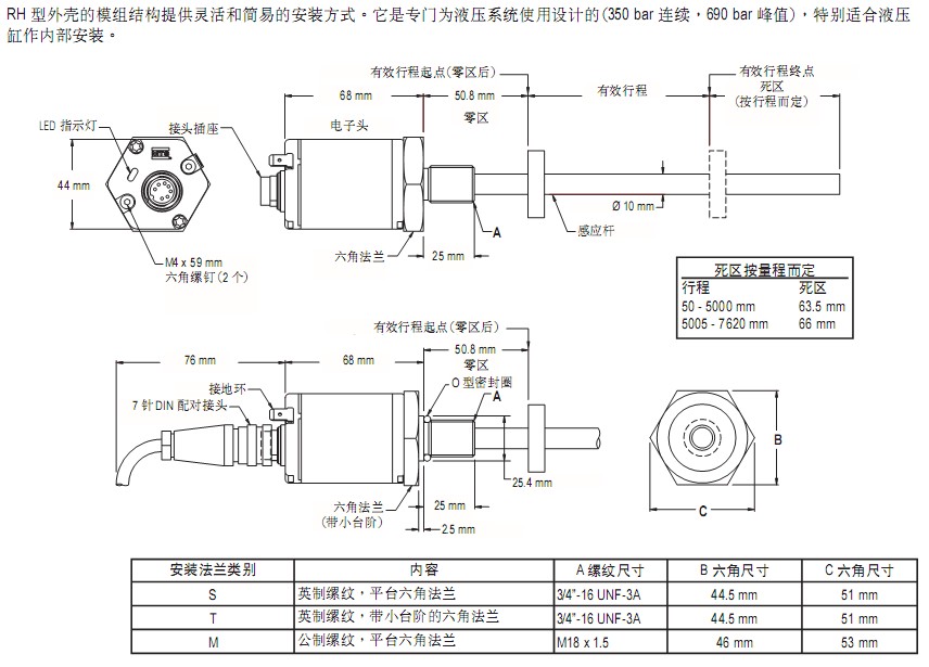 美國(guó)MTS RP/RH系列直線位移傳感器尺寸